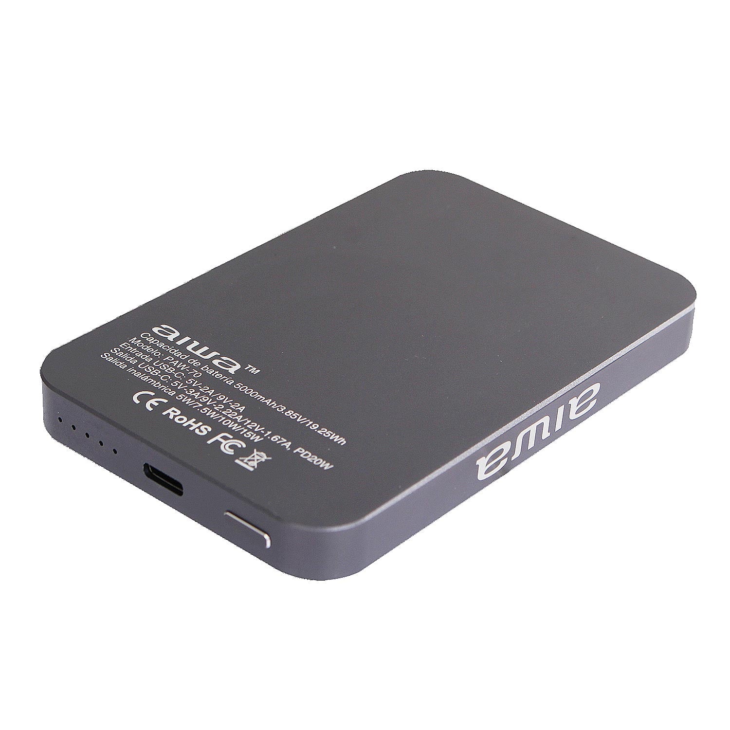 La batería externa AIWA PAW-70 de 5000mAh combina tecnología magnética inalámbrica y conexión por cable para mantener tus dispositivos cargados en cualquier momento y lugar. Práctica, eficiente y siempre lista para acompañarte