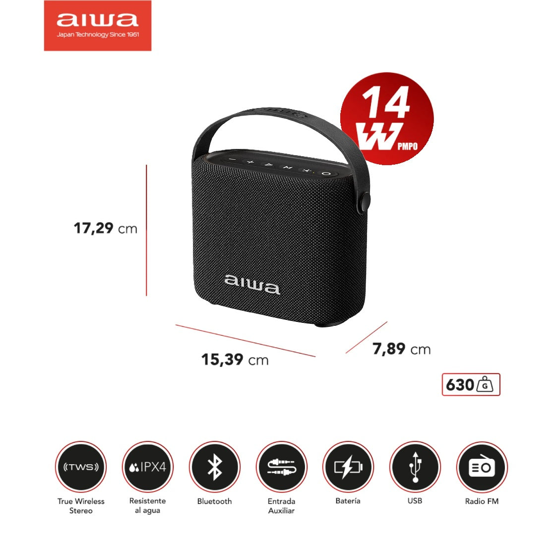 - Potencia máxima: 14W