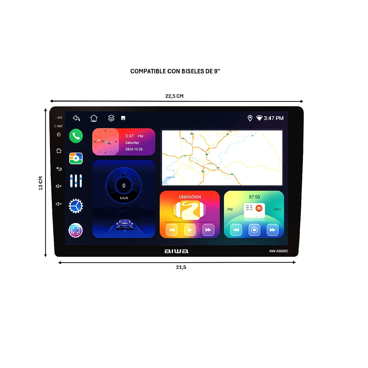 La increíble radio Aiwa AW-A928C posee pantalla HD de 9'', Android con procesador OctaCore, GPS, Bluetooth y compatibles con cámaras de reversa AHD. Conectividad total y tecnología premium para disfrutar cada viaje al máximo.
