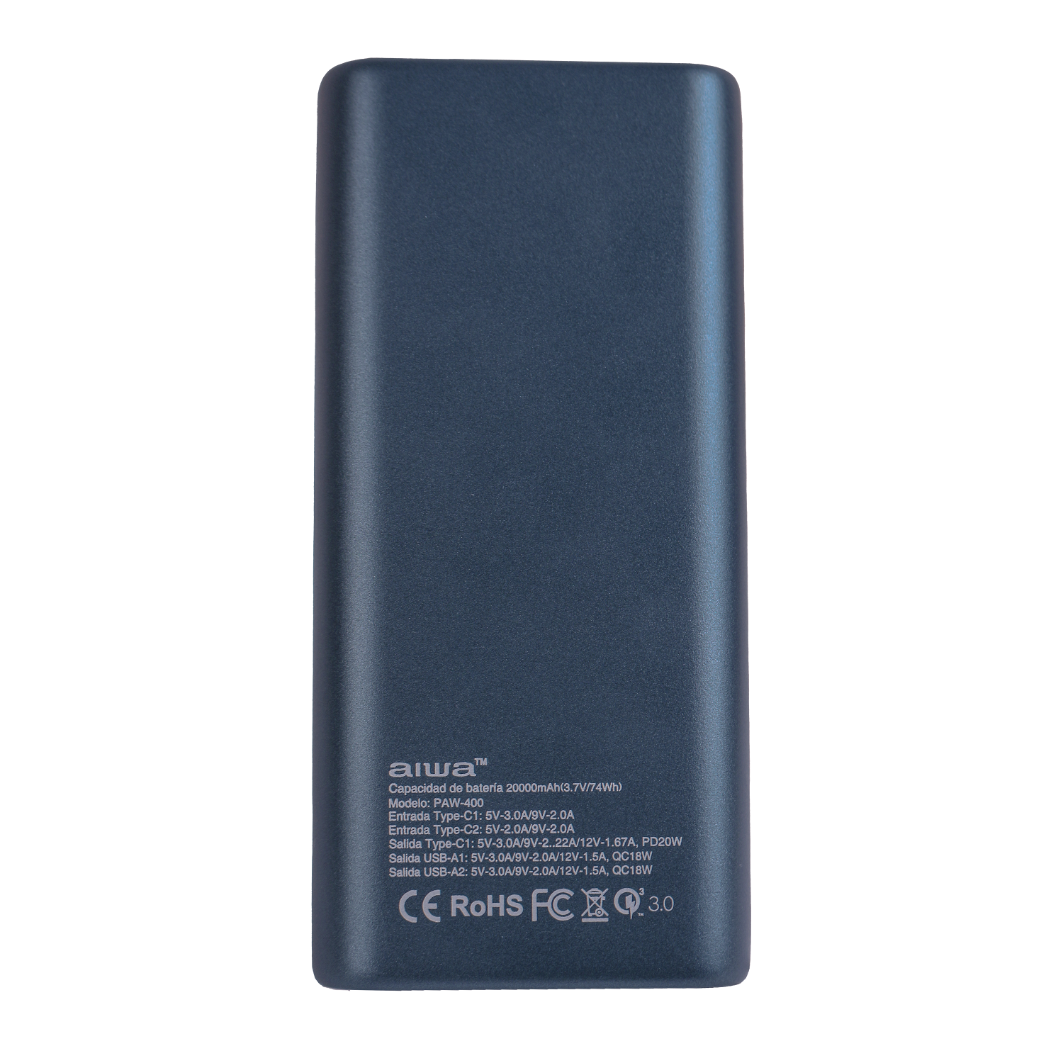 - Capacidad de la batería: 20.000mAh / 3,7V / 74W